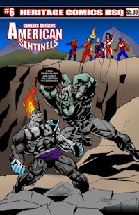 In this action-pack issue, the Sentinels continue their intense battle with Barron Brute. A stranger. calling himself Golem, join our heroes in their fight against Brute. Will the Sentinels and Golem be able to stop the rampaging mad man?
