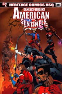 In this second action packed issue, the American Sentinels discover their amazing powers and how to use them. This helps them as they prepare to go on their very first mission. They find themselves behind enemy lines while discovering what happened to the missing villagers from several towns. What they discover is horrible and unbelievable.